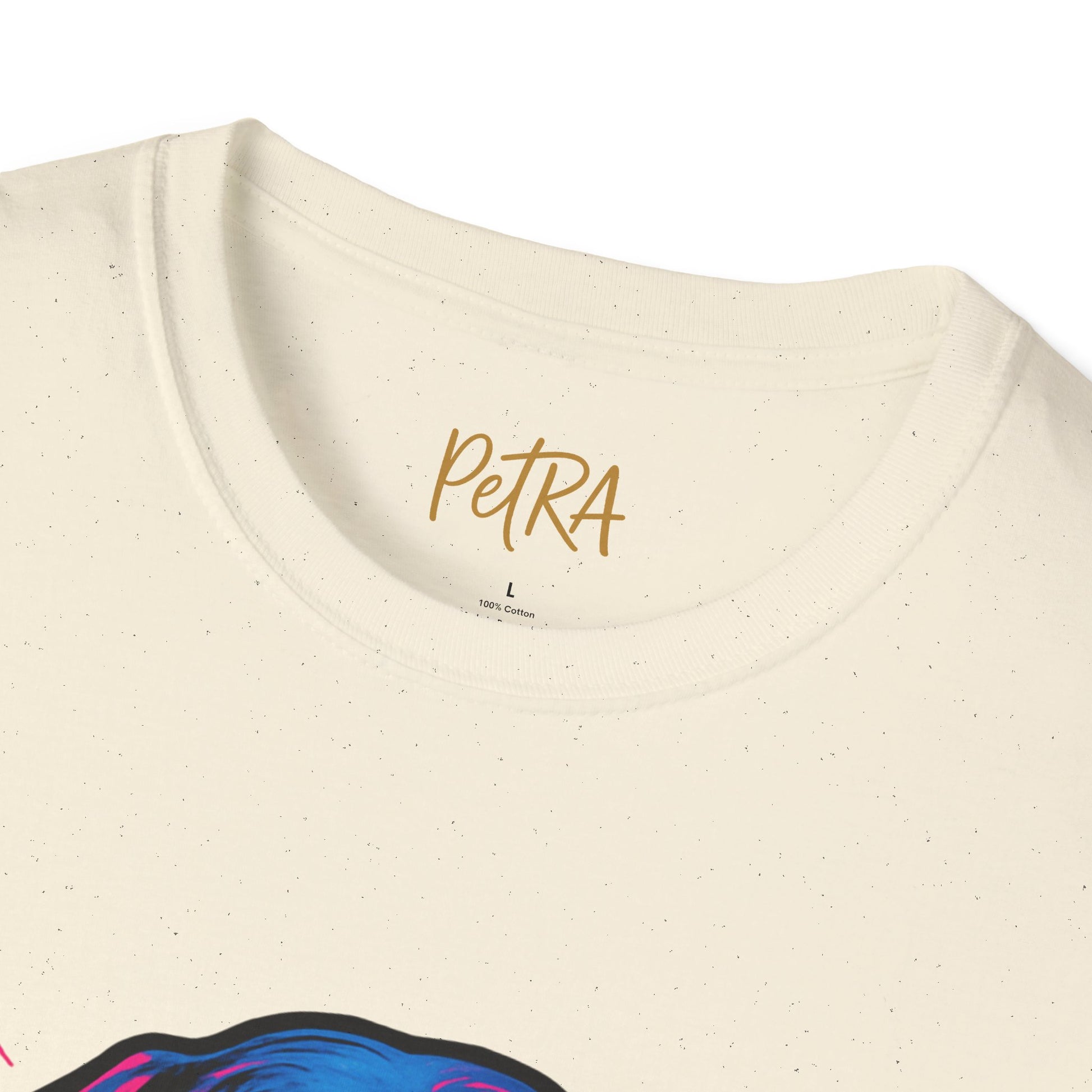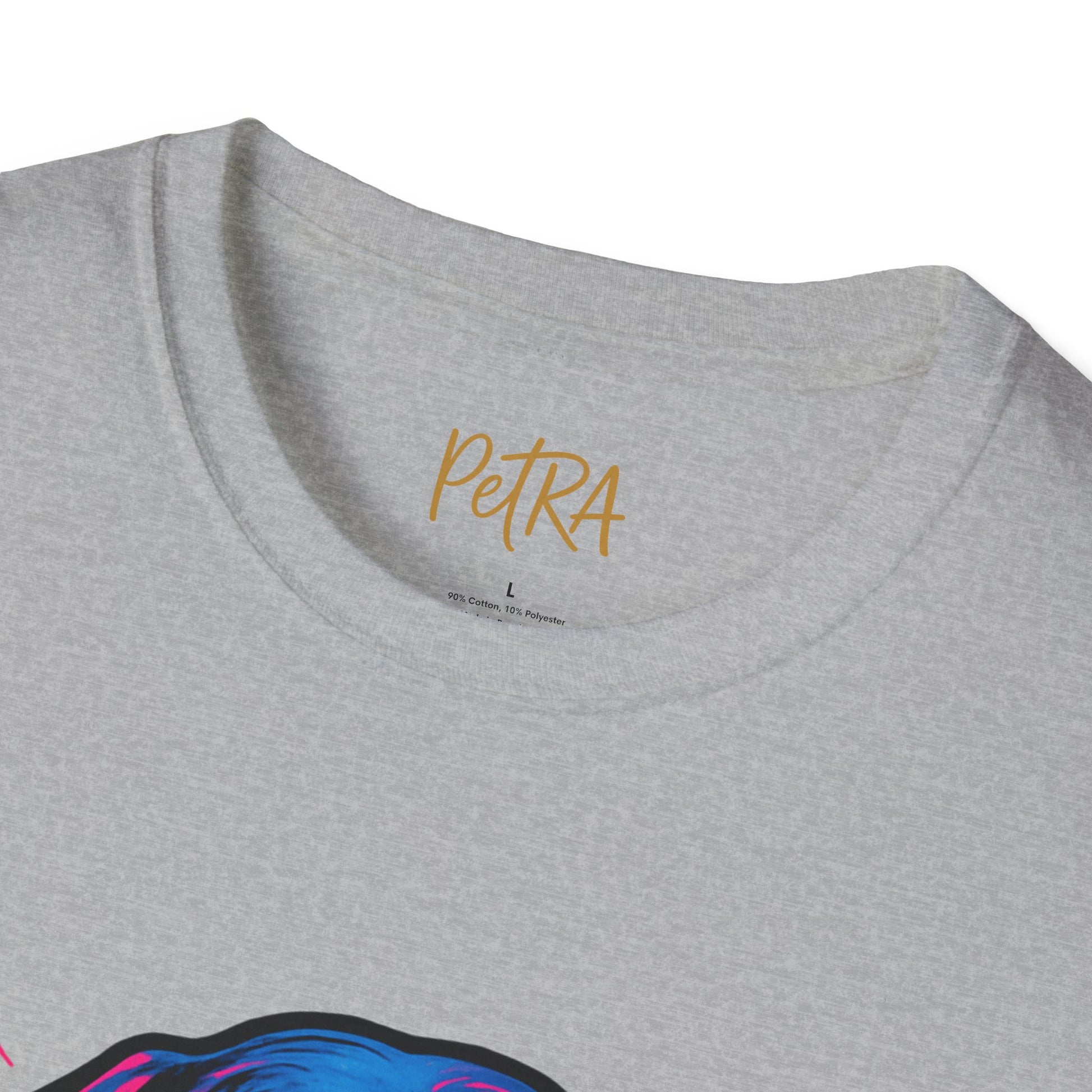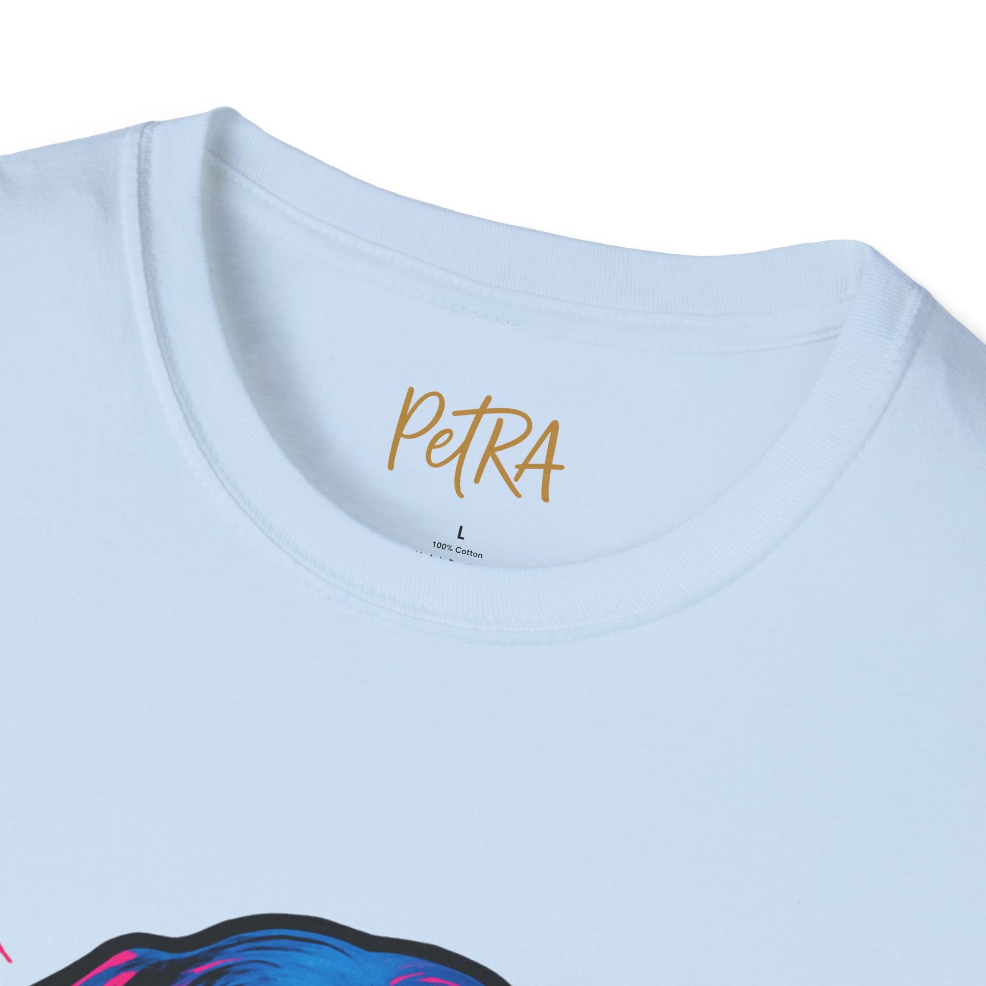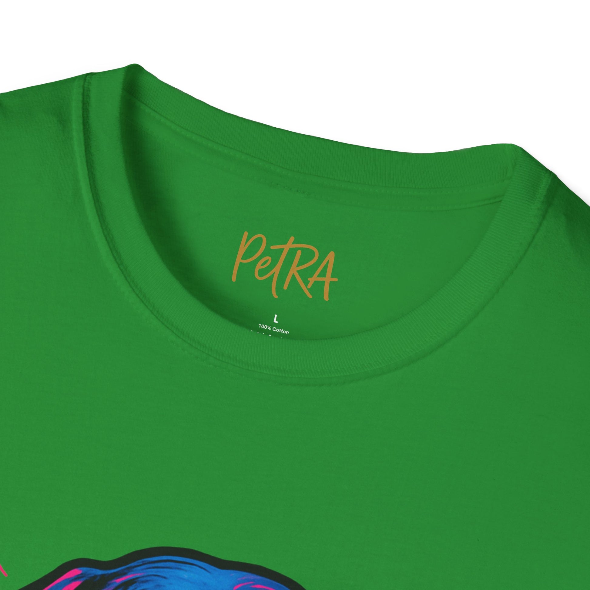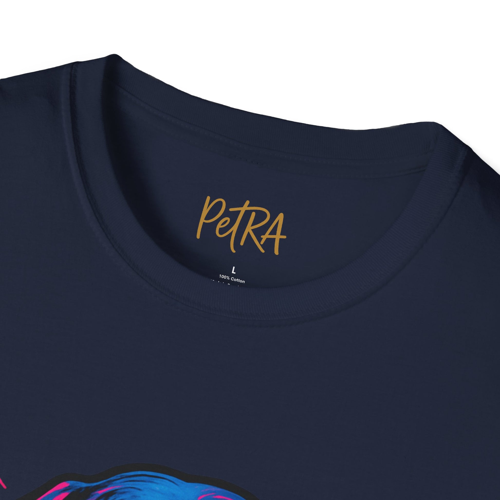 This modern pop art Dachshund T Shirt turns heads with its bold color blocking and graffiti-inspired edge. Featuring a neon portrait set against a soft blue shirt, this design brings a punch of personality to any dog lover’s wardrobe.